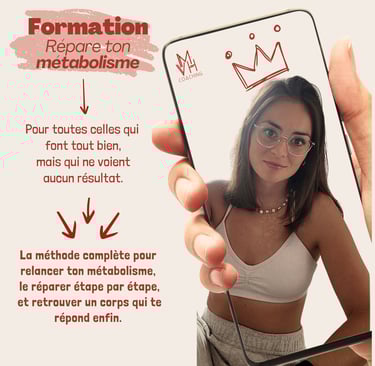 Dans cette formation, tu vas apprendre pas à pas à réparer ton métabolisme et relancer ta perte de poids, sans coach et à ton rythme.